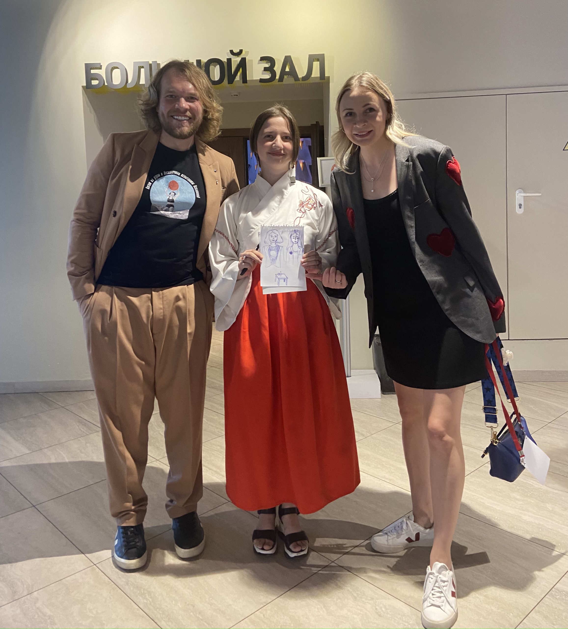 - А еще! Одна девушка даже нарисовала во время выступления нашего продюсера и директора — Марию и режиссера — Владимира.